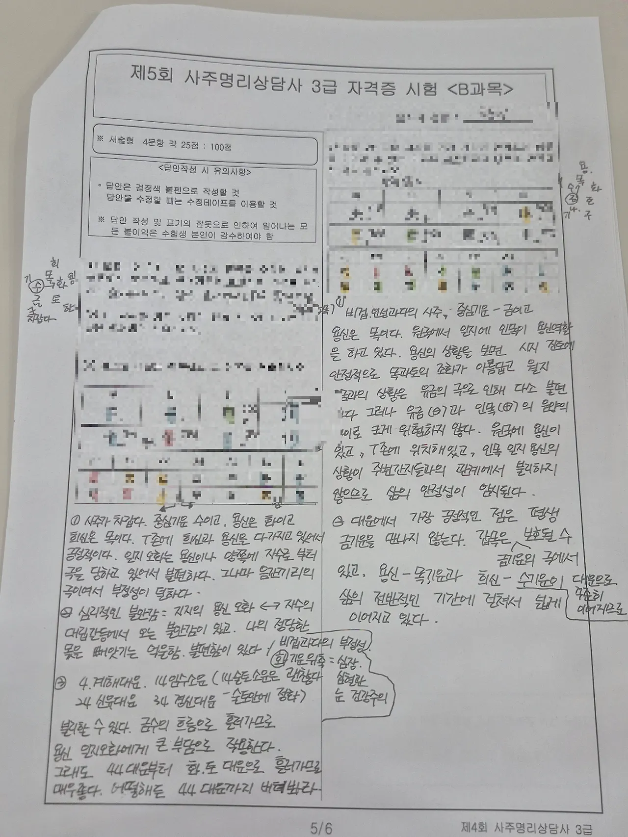지난 9월 27일(토), 제5회 사주명리상담사 3급 자격시험이 시행되었습니다.