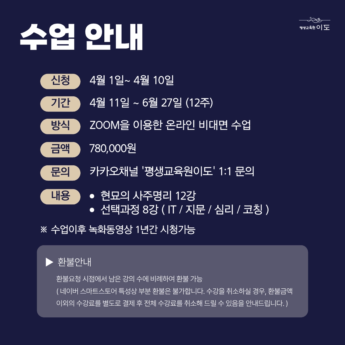현묘의 사주명리 7기 중급반은 초급반 수강자에 한해 신청 가능합니다.